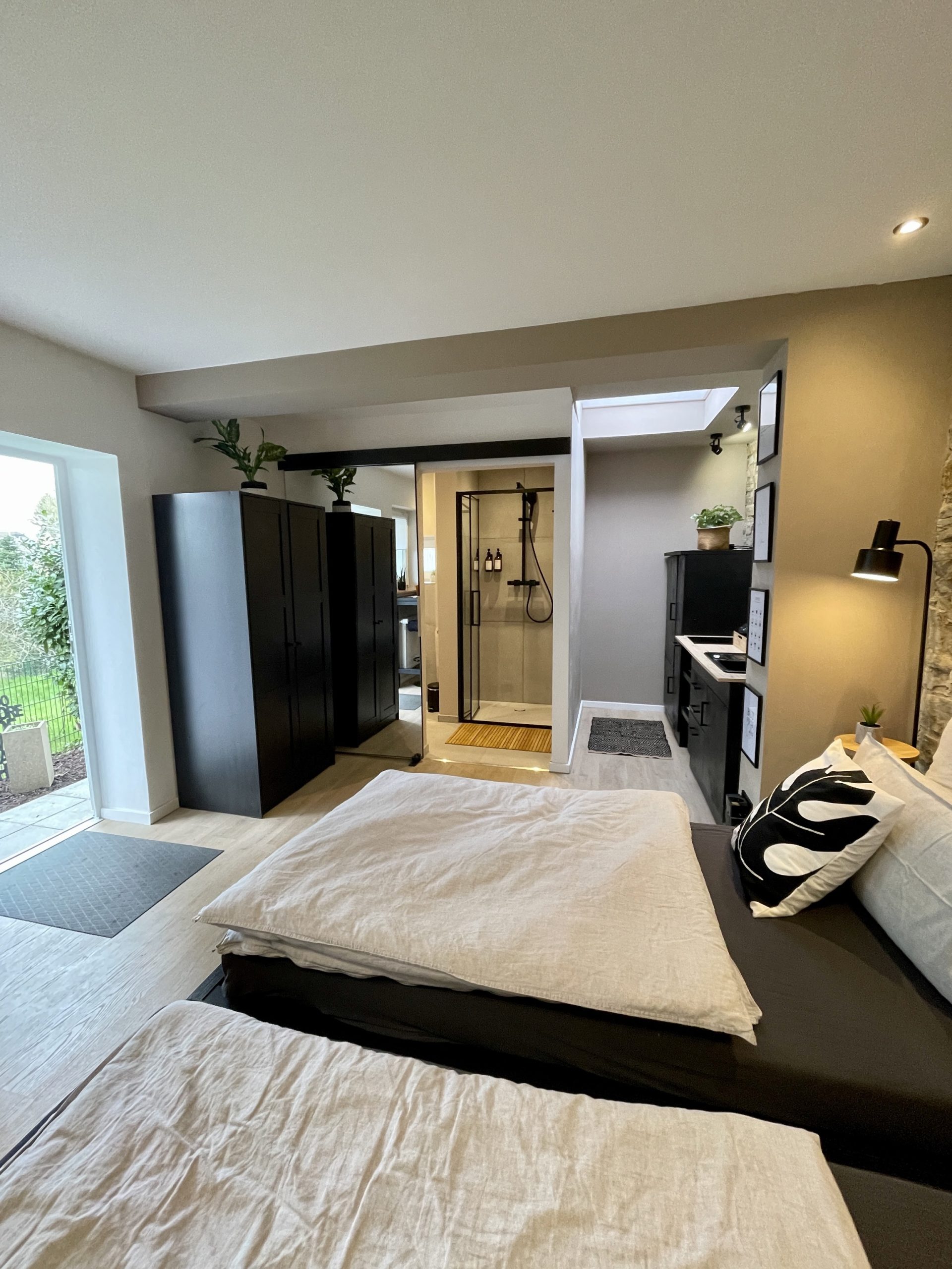 Das 20for2 sind 20 gut durchdachte Quadratmeter für zwei Personen. Durch die ruhige Lage lässt es sich entspannt und erholsam schlafen. 1 Zimmer mit Küche, TV und Bad mit Dusche. Duschgel und Schampoo inklusive.